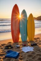 When it comes to surfing, we understand it’s essential to have the right equipment. For beginners, soft-top boards are best, while advanced gear like shortboards enhances our performance and agility in challenging waves.