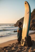 Caring for our wetsuit’s like nurturing a delicate flower. We should prioritize proper wetsuit cleaning and storage by rinsing it after use, avoiding harsh chemicals, and storing it folded in a cool, dark place.